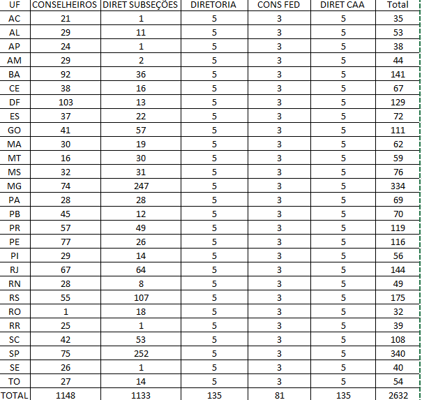 Número de Delegados e Delegadas para o Congresso Nacional da Advocacia