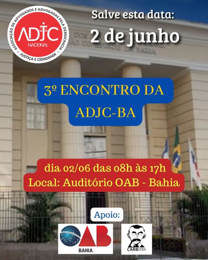 Coordenação: Carina Quintão. Advogada em Lauro de Freitas. Integrante da Coordenação da ADJC-BA.